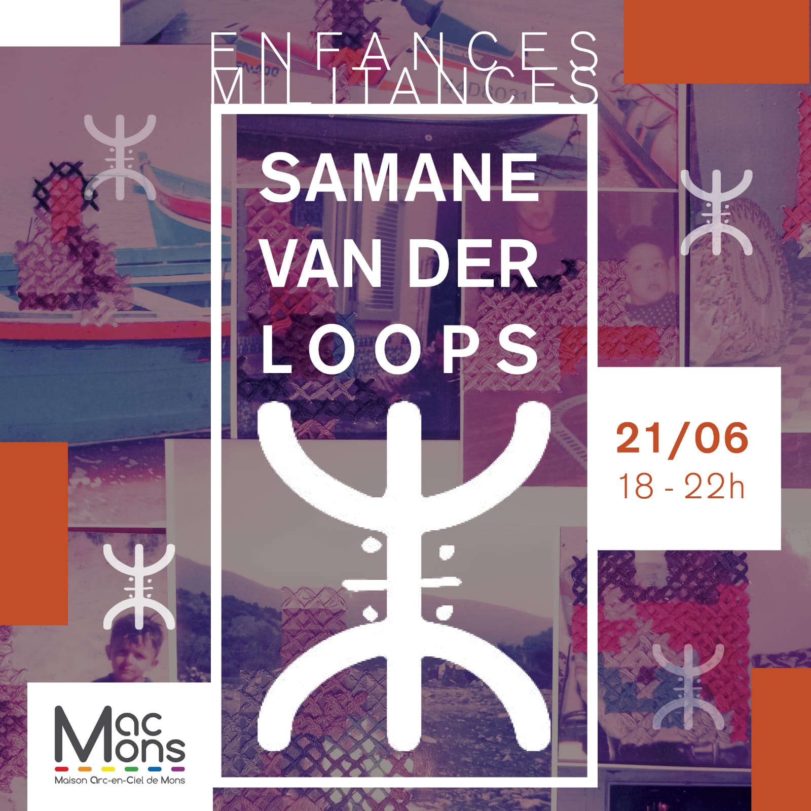 ENFANCES / MILITANCES est la nouvelle exposition de la MAC Mons ! Samane Van Der Loops est une artiste amazigh queer trans non binaire, qui, à travers la création textile, exprime les connexions entre son enfance, son identité singulière et sa militance. Découvrez ses tapisseries, photographies et illustrations, lui permettant de redéfinir une nouvelle identité, un nouveau vocabulaire amazigh queer.